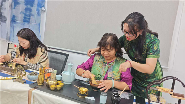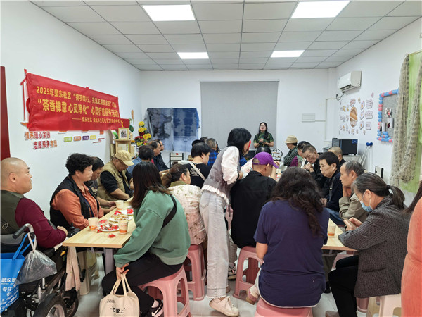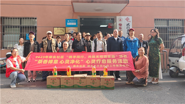 10月14日下午1點,楊園街柴東社區(qū)聯(lián)合湖北木蘭花社會工作服務(wù)中心,提前2小時啟動“攜手同行,共筑無障礙家園”項目第二場活動——“茶香禪意 心靈凈化”心靈療愈服務(wù)。4名木蘭花社工早早到場,掛茶文化紗幔與活動橫幅,擺放40人規(guī)模的桌椅、烏金石茶臺、博古架,細致布置茶道工具、香道物料與茶百戲用具,讓會場滿溢溫馨的傳統(tǒng)文化氛圍。