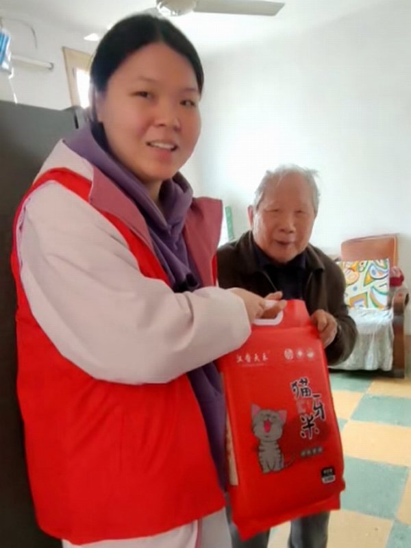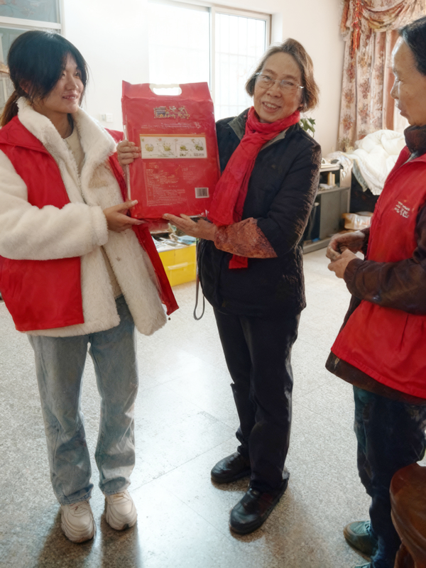 隨后,社工們與老人促膝長談,傾聽其買菜、取暖、就醫等生活難題,記錄需求并對接社區資源提供解決方案。同時,為每位老人送上一袋大米,傳遞溫暖。