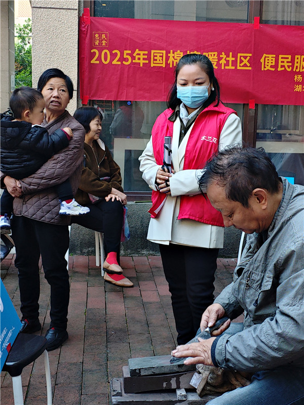 最受居民歡迎的當屬和諧共融套圈圈互動環節,洗碗手套、抽紙、指甲剪套裝等實用生活物品作為獎品,吸引了眾多居民踴躍參與,歡聲笑語中拉近了鄰里距離。“從7月到11月,理發、磨刀、修鞋、修傘、貼膜、縫補,不出小區就能免費享受,太方便了!”居民尤師傅滿臉笑意地說,由衷希望社區今后能多多組織此類實用又有趣的便民活動。